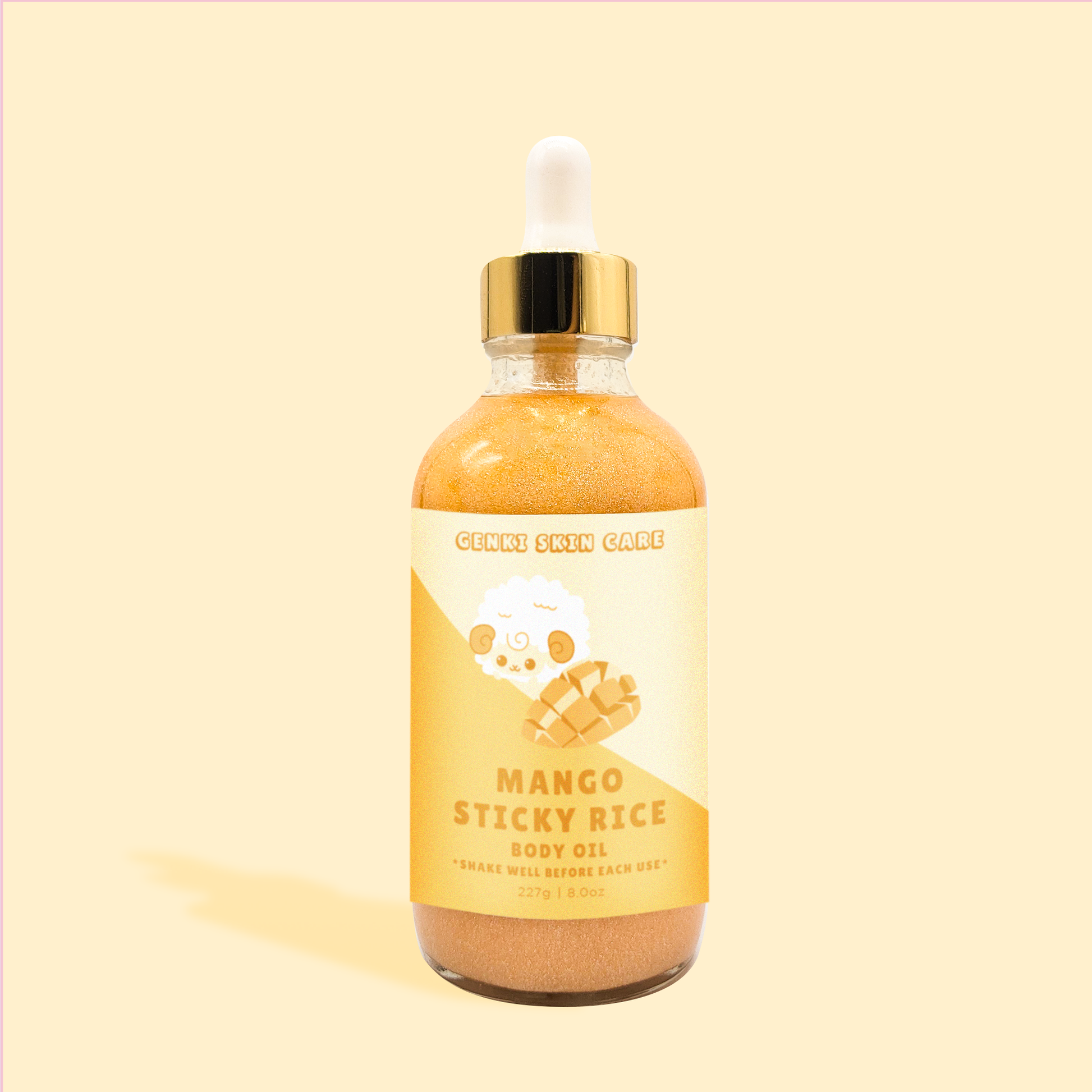 Glow with the tropical goodness of our Mango Sticky Rice Shimmering Body Oil. Infused with the sweet scent of ripe mango and creamy coconut, this luxurious oil deeply hydrates while adding a radiant shimmer to your skin, leaving it soft, luminous, and beautifully scented.