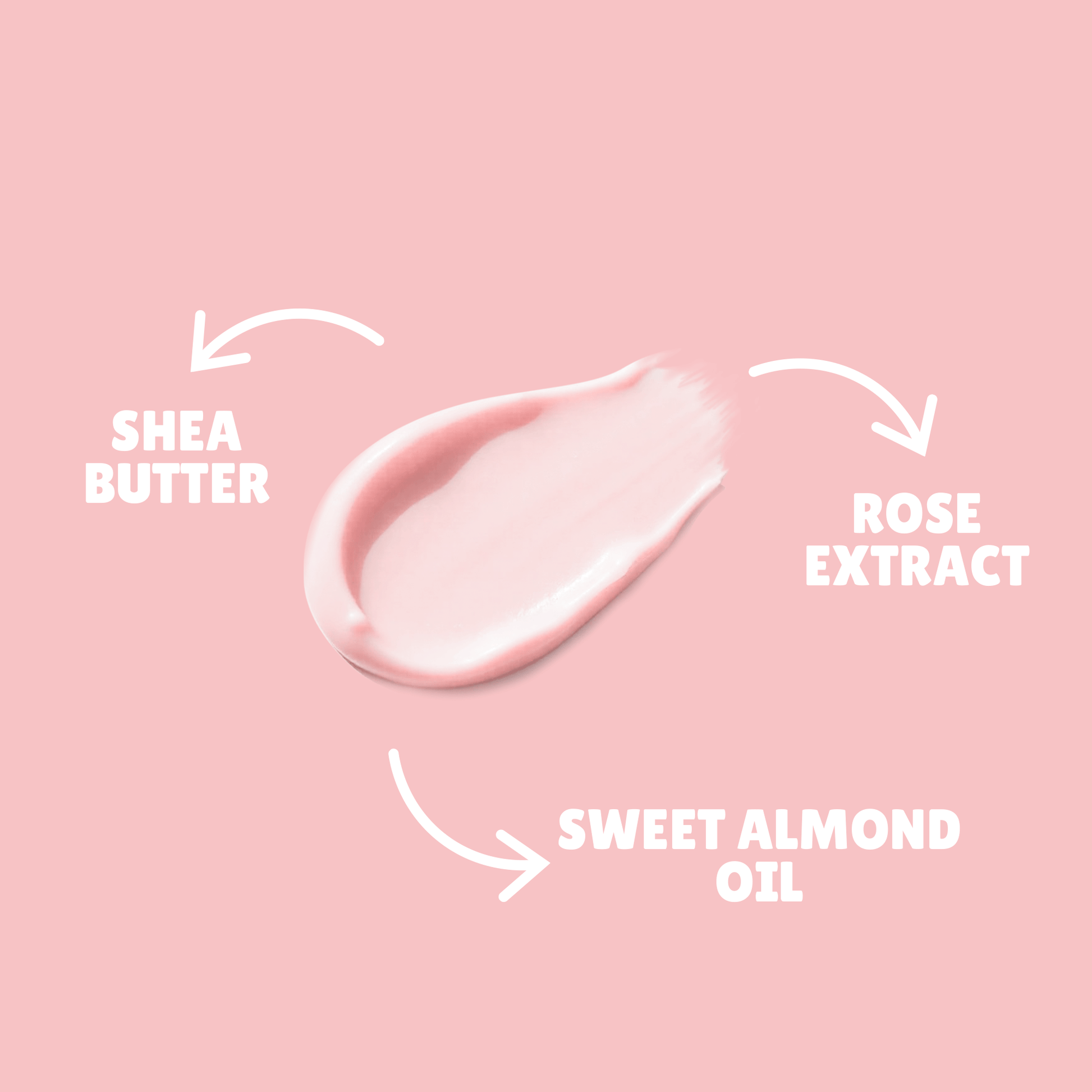 Distilled Water, Sweet Almond Oil, Avocado Oil, Shea Butter, Stearic Acid, Emulsifying Wax, Rose Extract, Red Color (CI 17200, CI 14700, Glycerin), Geogard 221, Lychee and Rose Fragrance Oil