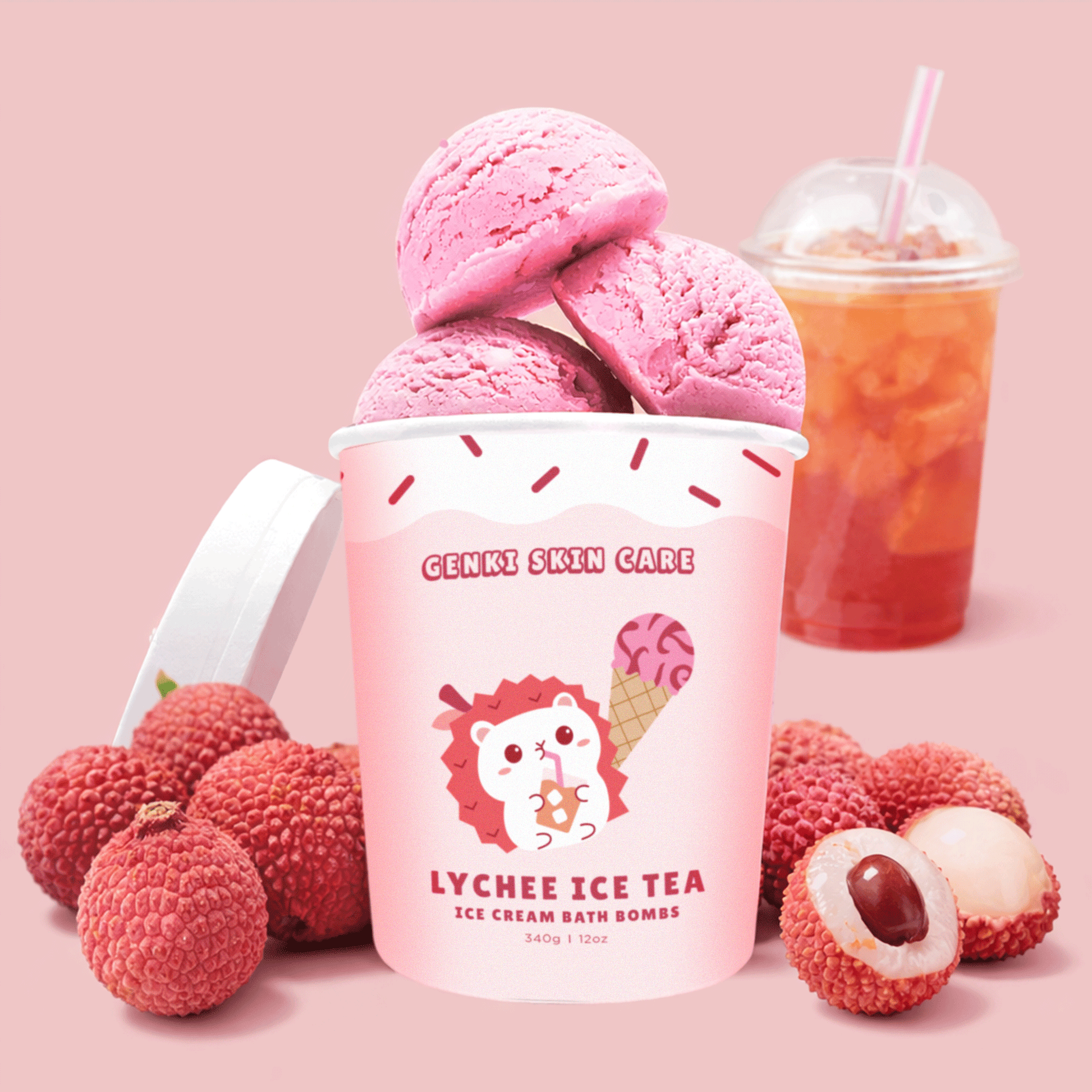 Turn your bath into a sweet escape with our Lychee Ice Tea Ice Cream Scoop Bath Bombs. Each scoop fizzes into a refreshing blend of juicy lychee and lightly sweetened iced tea, creating a soft, pastel soak that feels as good as it looks.