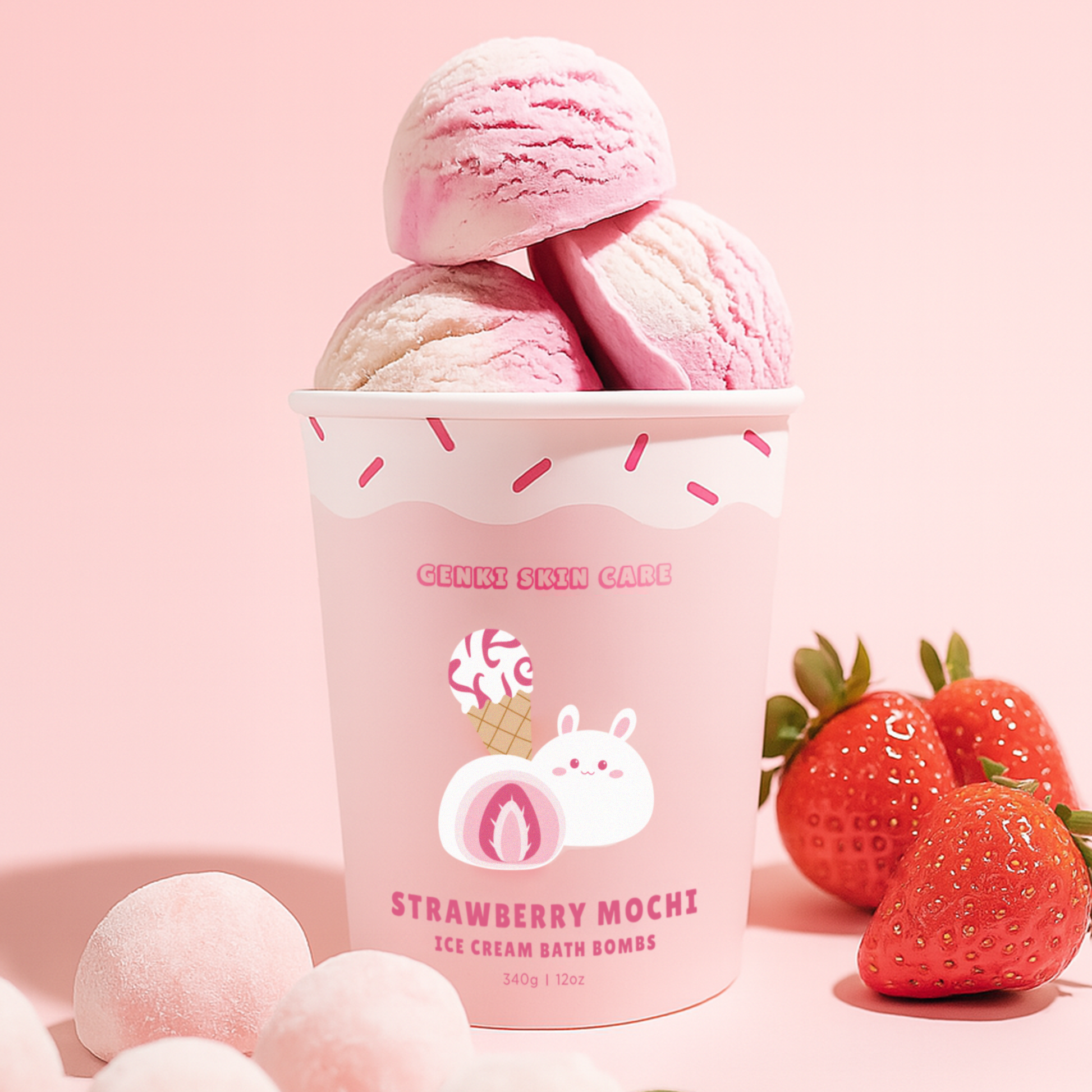 This Strawberry Mochi Ice Cream Bath Bombs set come with three 4 oz scoops, each infused with the sweet, fruity scent of strawberry mochi. These fizzy bath bombs dissolve into your bath, releasing a delightful fragrance while hydrating and softening your skin. Perfect for a relaxing, indulgent soak, they add a fun, refreshing twist to your bath time.